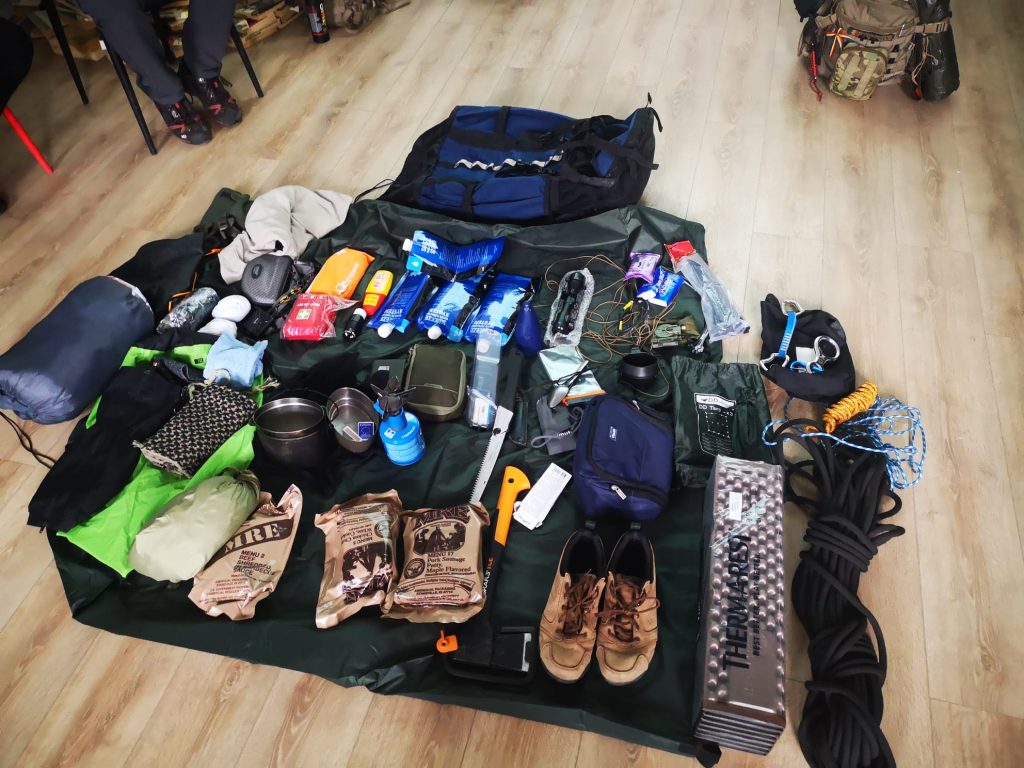 Instructorii ne-au prezentat și ceea ce trebuie să conțină un rucsac de urgență pentru 24 și 72 de ore, trusa de supraviețuire și trusa medicală.