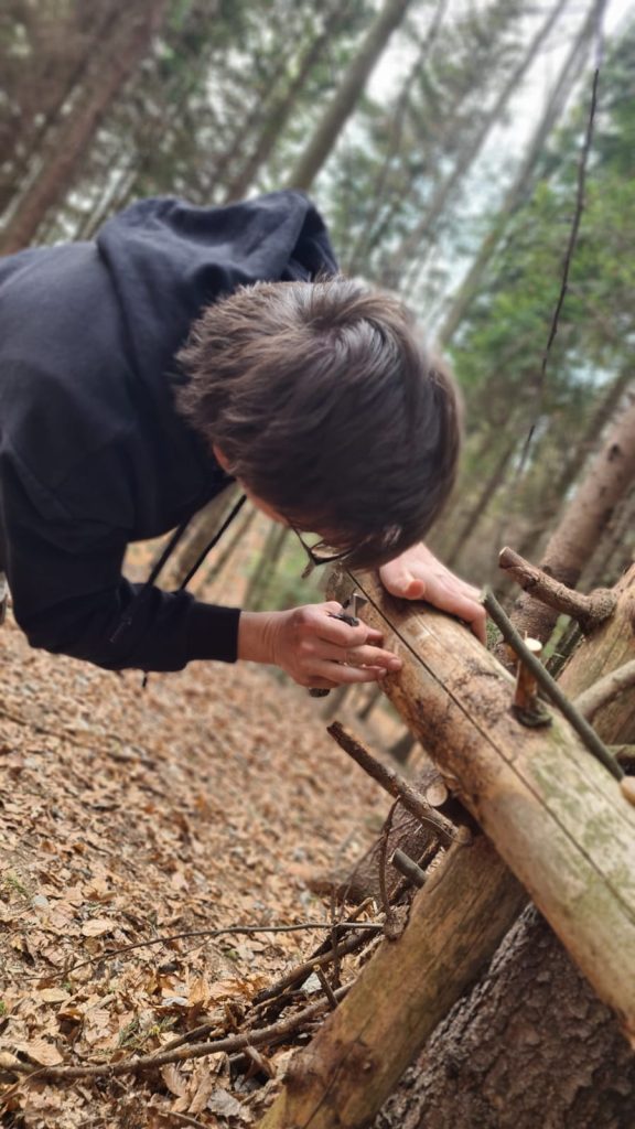 La partea practică desfășurată în pădure, voluntarii au avut parte de o simulare pentru coborâre în rapel, au învățat cum să facă un ham improvizat utilizând coarda de alpinism și au construit un adăpost pentru patru persoane. Colegii și-au mai îmbogățit cunoștințele cu informații de primă necesitate în îngrijirea medicală și detalii despre algoritmul M.A.R.C.H.